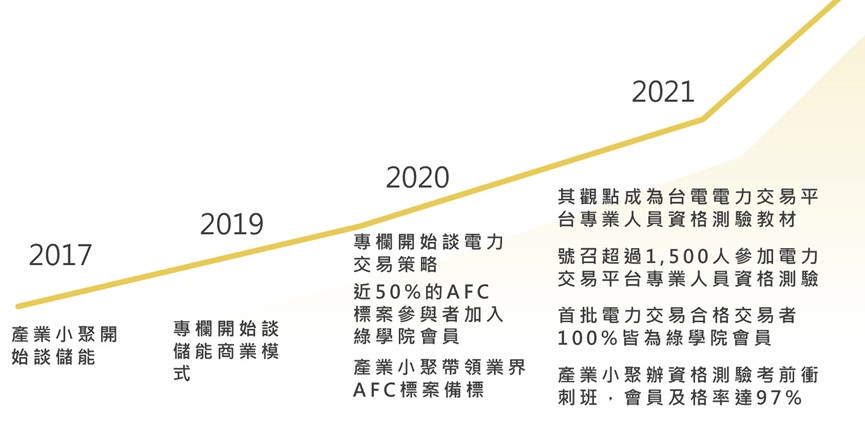接著,我們花四年蹲點的儲能商機,在今年七月份以電力交易平台的形式正式開展,在綠學院及許多同謀的號召下,超過1,500人參加電力合格交易者資格測驗,電力交易劃下臺灣能源轉型及電業自由化的里程碑,而我們就是帶路人!